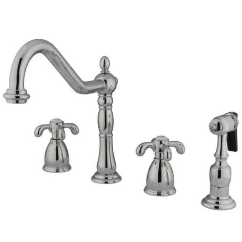 Kingston Brass French Country Widespread Kitchen Faucet, Polished Chrome