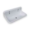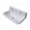 36″x18″ single basin vintage inspired bath/utility sink. Designed to be top mounted/dropped in on top of a countertop and base cabinet. Predrilled to accommodate twin faucets.
