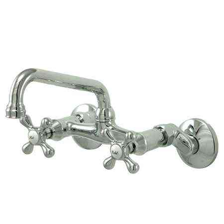 Kingston Brass Wall Mount Kitchen Faucet with Twin Magellan handle, Polished Chrome