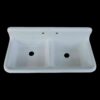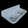 All of the original charm of this early century design has been captured and preserved by this NBI reproduction. The two spacious and staggered basins reach depths of 8″ and 11″ making this a great addition to a busy kitchen. This model features a rolled rim design and will accommodate a traditional 8″ on center wall mounted faucet and the lower total backsplash height of 9.5″ encourages a window view from above. Both drain outlets have been improved to a standard 3.5″ diameter. Manufactured in-house from durable reinforced cast acrylic, this reproduction achieves excellent durability and ease of care while maintaining an authentic vintage style. Quality assured by our five year manufacturers warranty and your satisfaction guaranteed or your money back per our 30 day return policy.