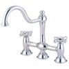 This faucet consists of stylish, immaculate body work and a traditional look compliant to those who desire the classic style design. The faucet has a double handle deck mount setup and features an Widespread platform. The body is fabricated from solid brass for durability and long-lasting use. The color finish is made of polished chrome for that reflective shine, as well as resisting scratches, corrosion and tarnishing. The spout rotates 360 degrees for accessibility and convenience. The handle acts as a 1/4-turn on/off water control mechanism for easy management of water volume and temperature. The faucet operates with a ceramic disc valve for droplet-free functionality with the water measured 2.2 GPM (8.3 LPM) and a 60 PSI maximum rate. An integrated removable aerator is inserted beneath the spout’s head piece for conserving water flow. A 10-year limited warranty is provided to the original consumer.