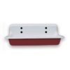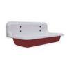 Wall mountable 36″x18″ single basin vintage inspired bath/utility sink. Designed to accommodate twin faucets. Includes an integrated wall mount kit that allows the sink to be free hung from a wall. The exterior of the sink is finished and painted in Sherwin Williams “ROOKWOOD RED”.