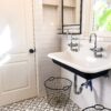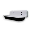 Wall mountable 36″x18″ single basin vintage inspired bath/utility sink. Designed to accommodate twin faucets. Includes an integrated wall mount kit that allows the sink to be free hung from a wall. The exterior of the sink is finished and painted in Sherwin Williams “TRICORN BLACK”.